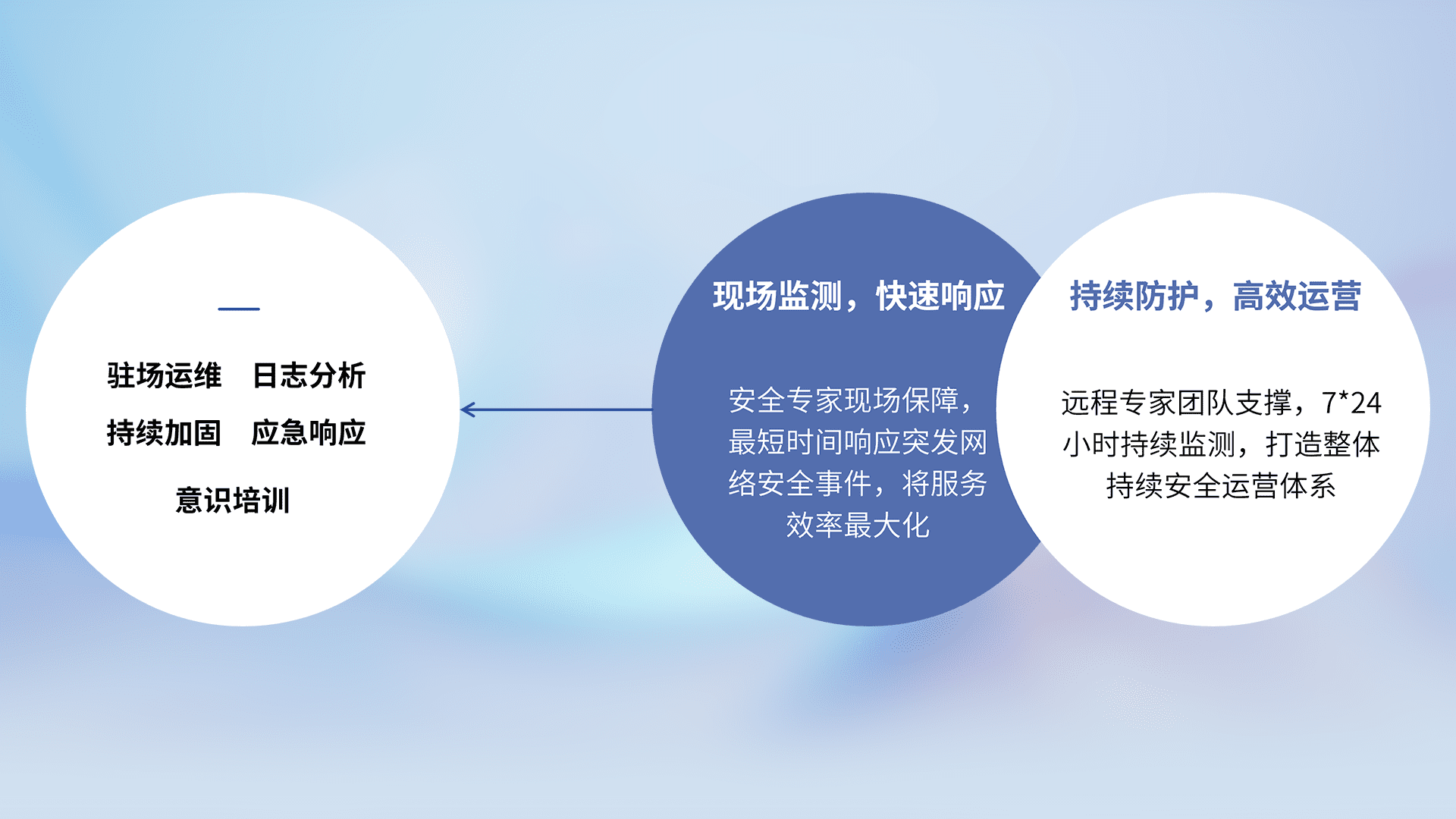 7X24小时持续监测安全事件,保持安全策略有效性,降低资产脆弱性风险,,,精准拦截黑客攻击,,减少被黑客利用的机会,,,第一时间遏制,,,,降低损失。。